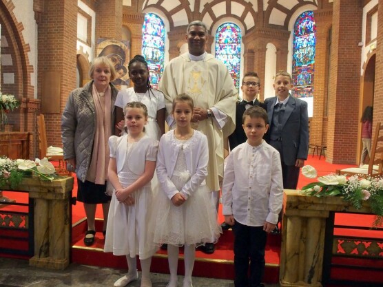 Le dimanche 5 mai à l’église Sainte Thérèse de l’enfant Jésus de Mulhouse, accompagnés de leur catéchiste Marguerite Dejean : Joyce BEYOKO BOMBULA, Clément BIENTZ, Natasha DEJEAN DE LA BATIE, Lucas SIFFERLEN, Camélia SINATRA et Gianni SINATRA.